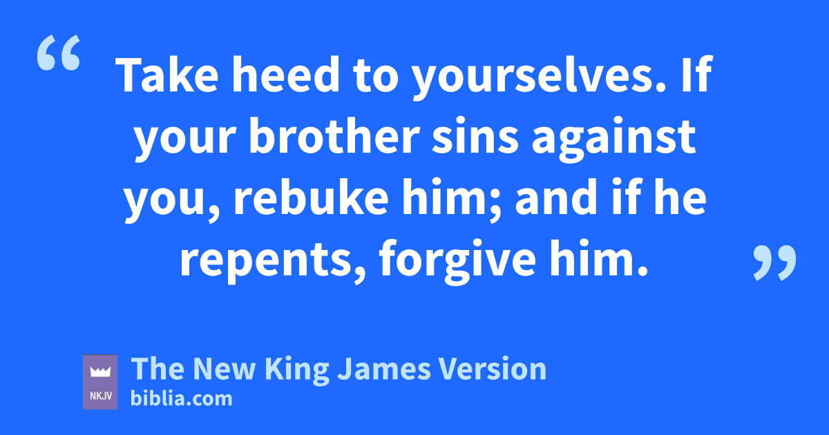 17 Then He said to the disciples, a“It is impossible that no 1offenses should come, but bwoe to him through whom they do come! 2 It would be better for him if a millstone were hung around his neck, and he were thrown into the sea, than that he should 2offend one of these little ones. 3 Take heed to yourselves. cIf your brother sins 3against you, drebuke him; and if he repents, forgive him. 4 And if he sins against you seven times in a day, and seven times in a day returns 4to you, saying, ‘I repent,’ you shall forgive him.”