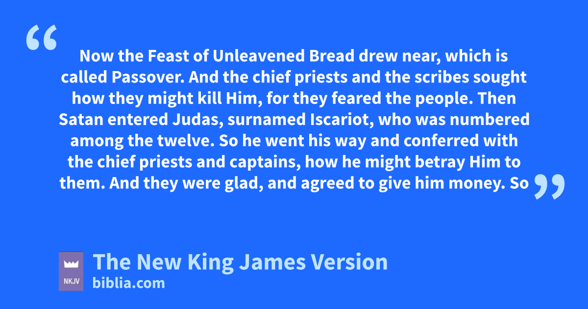 22 Now athe Feast of Unleavened Bread drew near, which is called Passover. 2 And bthe chief priests and the scribes sought how they might kill Him, for they feared the people.
