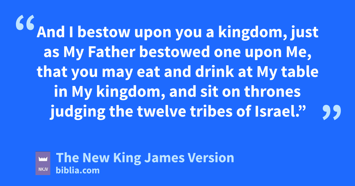 28 “But you are those who have continued with Me in zMy trials. 29 And aI bestow upon you a kingdom, just as My Father bestowed one upon Me, 30 that byou may eat and drink at My table in My kingdom, cand sit on thrones judging the twelve tribes of Israel.”