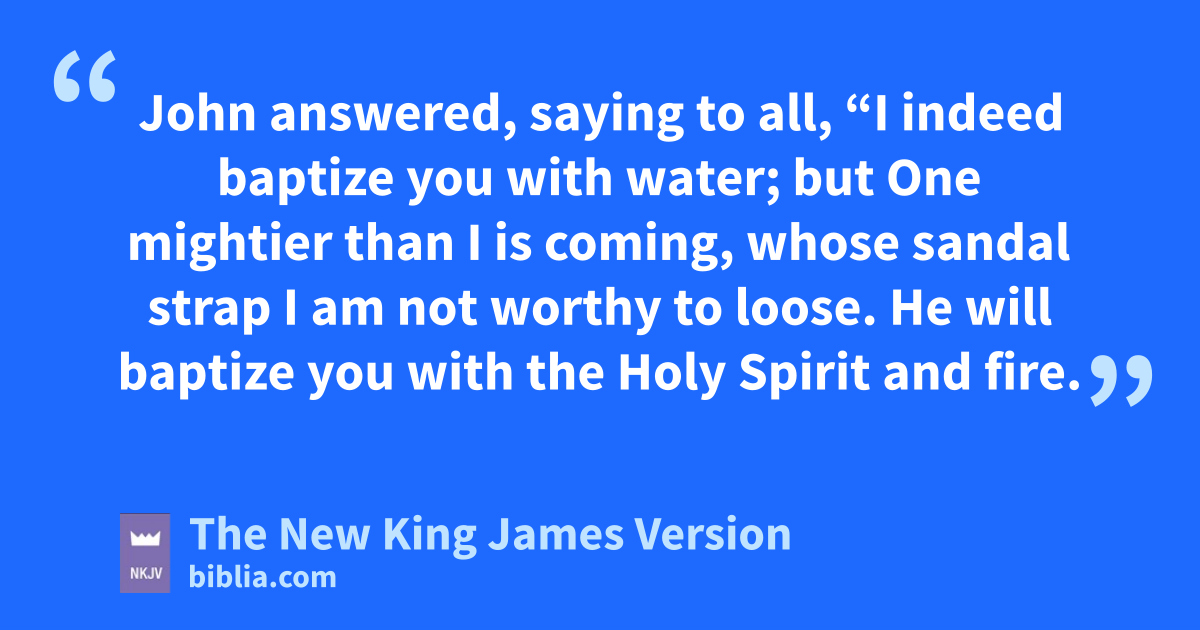 15 Now as the people were in expectation, and all reasoned in their hearts about John, whether he was the Christ or not, 16 John answered, saying to all, q“I indeed baptize you with water; but One mightier than I is coming, whose sandal strap I am not worthy to loose. He will rbaptize you with the Holy Spirit and fire. 17 His winnowing fan is in His hand, and He will thoroughly clean out His threshing floor, and sgather the wheat into His barn; but the chaff He will burn with unquenchable fire.”
