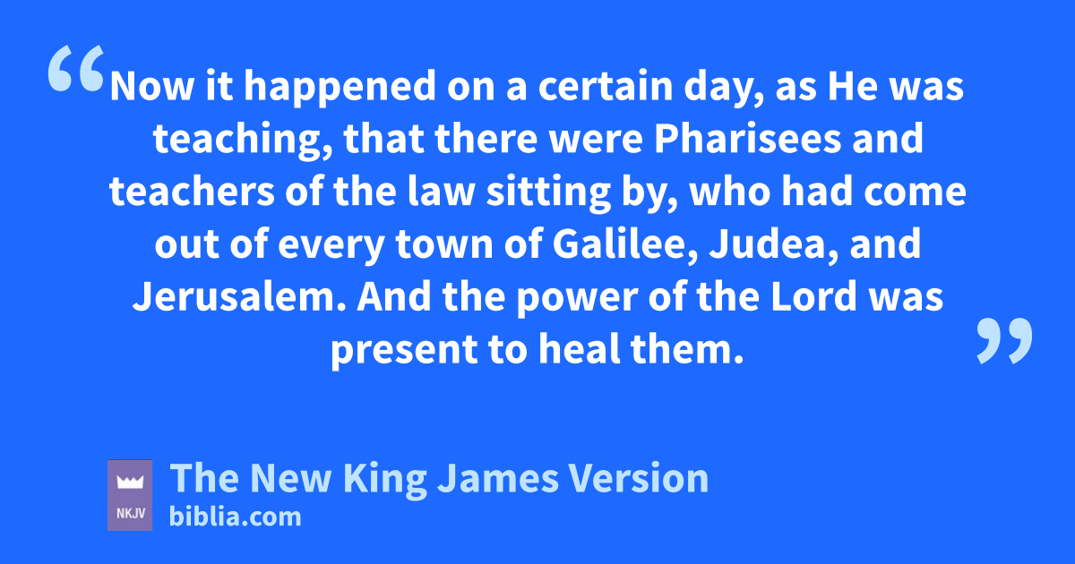17 Now it happened on a certain day, as He was teaching, that there were Pharisees and teachers of the law sitting by, who had come out of every town of Galilee, Judea, and Jerusalem. And the power of the Lord was present 3to heal them. 18 tThen behold, men brought on a bed a man who was paralyzed, whom they sought to bring in and lay before Him. 19 And when they could not find how they might bring him in, because of the crowd, they went up on the housetop and let him down with his bed through the tiling into the midst ubefore Jesus.