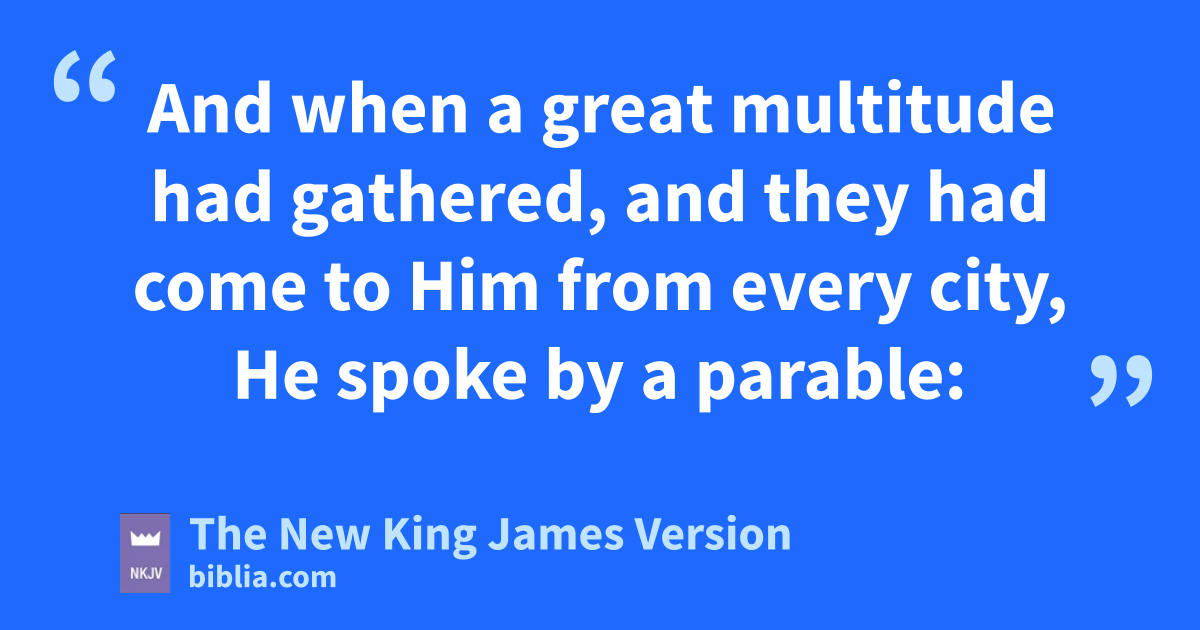 4 cAnd when a great multitude had gathered, and they had come to Him from every city, He spoke by a parable: 5 “A sower went out to sow his seed. And as he sowed, some fell by the wayside; and it was trampled down, and the birds of the air devoured it. 6 Some fell on rock; and as soon as it sprang up, it withered away because it lacked moisture. 7 And some fell among thorns, and the thorns sprang up with it and choked it. 8 But others fell on good ground, sprang up, and yielded 5a crop a hundredfold.” When He had said these things He cried, d“He who has ears to hear, let him hear!”