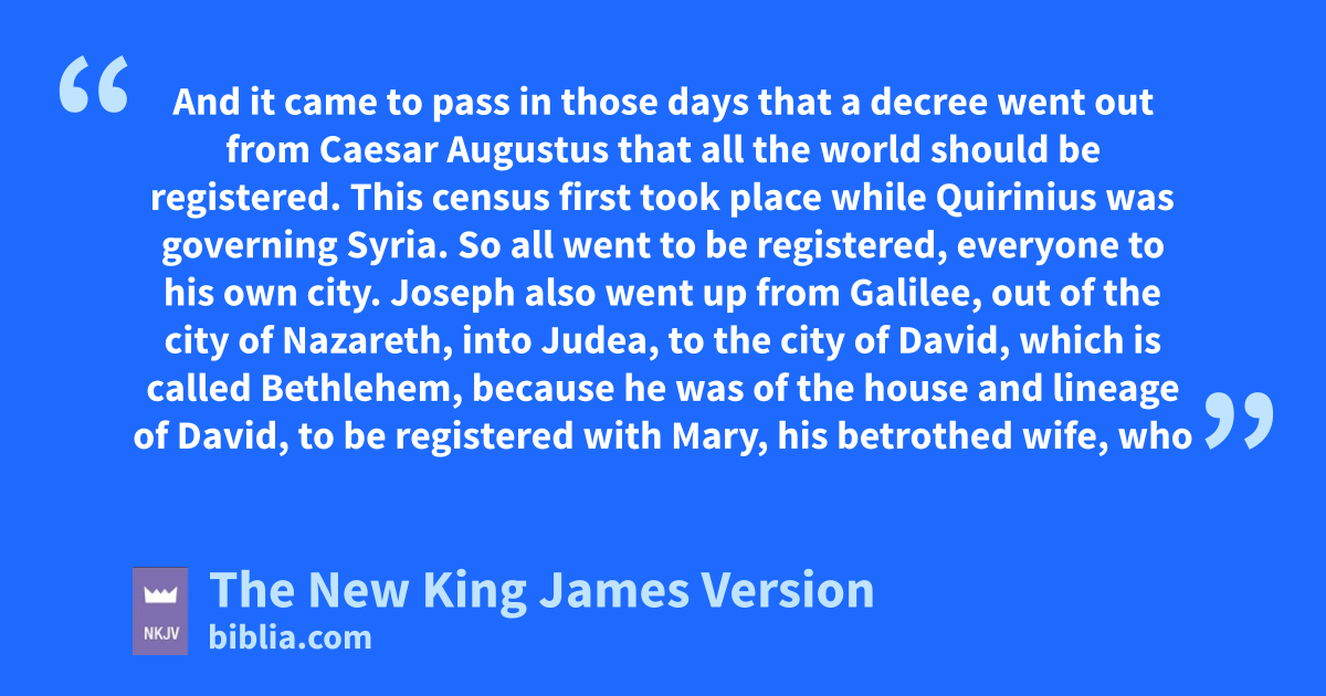 2 And it came to pass in those days that a decree went out from Caesar Augustus that all the world should be registered. 2 aThis census first took place while Quirinius was governing Syria. 3 So all went to be registered, everyone to his own city.