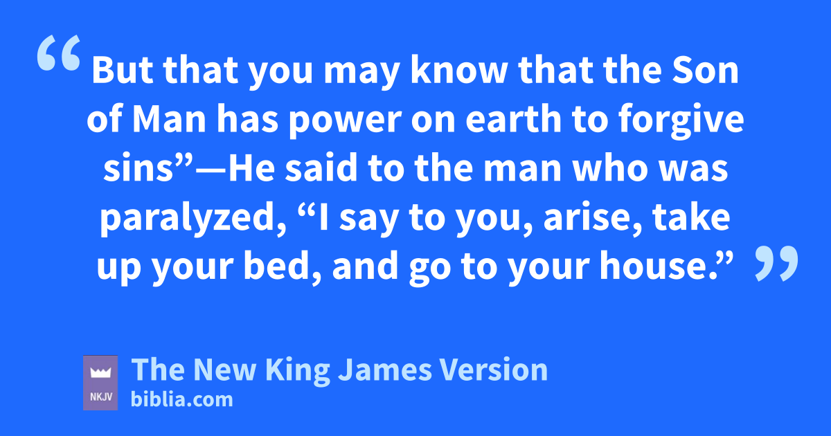 22 But when Jesus xperceived their thoughts, He answered and said to them, “Why are you reasoning in your hearts? 23 Which is easier, to say, ‘Your sins are forgiven you,’ or to say, ‘Rise up and walk’? 24 But that you may know that the Son of Man has power on earth to forgive sins”—He said to the man who was paralyzed, y“I say to you, arise, take up your bed, and go to your house.”