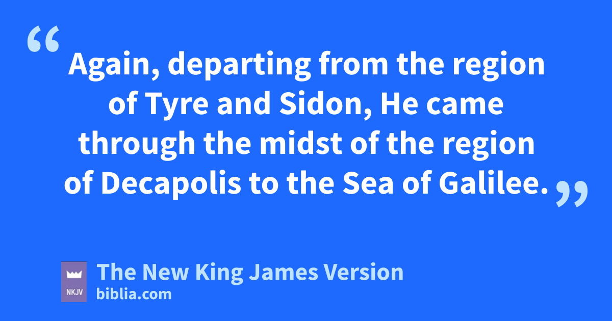 31 dAgain, departing from the region of Tyre and Sidon, He came through the midst of the region of Decapolis to the Sea of Galilee. 32 Then ethey brought to Him one who was deaf and had an impediment in his speech, and they begged Him to put His hand on him. 33 And He took him aside from the multitude, and put His fingers in his ears, and fHe spat and touched his tongue. 34 Then, glooking up to heaven, hHe sighed, and said to him, “Ephphatha,” that is, “Be opened.”
