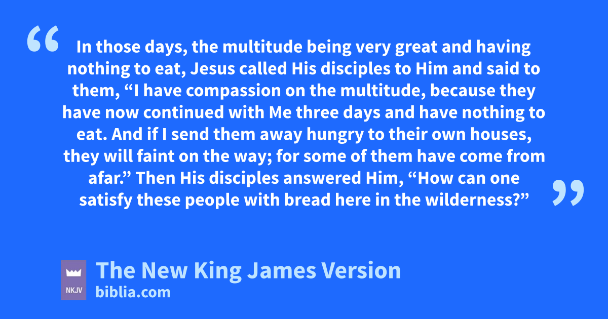 8 In those days, athe multitude being very great and having nothing to eat, Jesus called His disciples to Him and said to them, 2 “I have bcompassion on the multitude, because they have now continued with Me three days and have nothing to eat. 3 And if I send them away hungry to their own houses, they will faint on the way; for some of them have come from afar.”