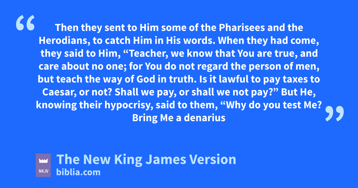 13 fThen they sent to Him some of the Pharisees and the Herodians, to catch Him in His words. 14 When they had come, they said to Him, “Teacher, we know that You are true, and 4care about no one; for You do not 5regard the person of men, but teach the gway of God in truth. Is it lawful to pay taxes to Caesar, or not? 15 Shall we pay, or shall we not pay?”
