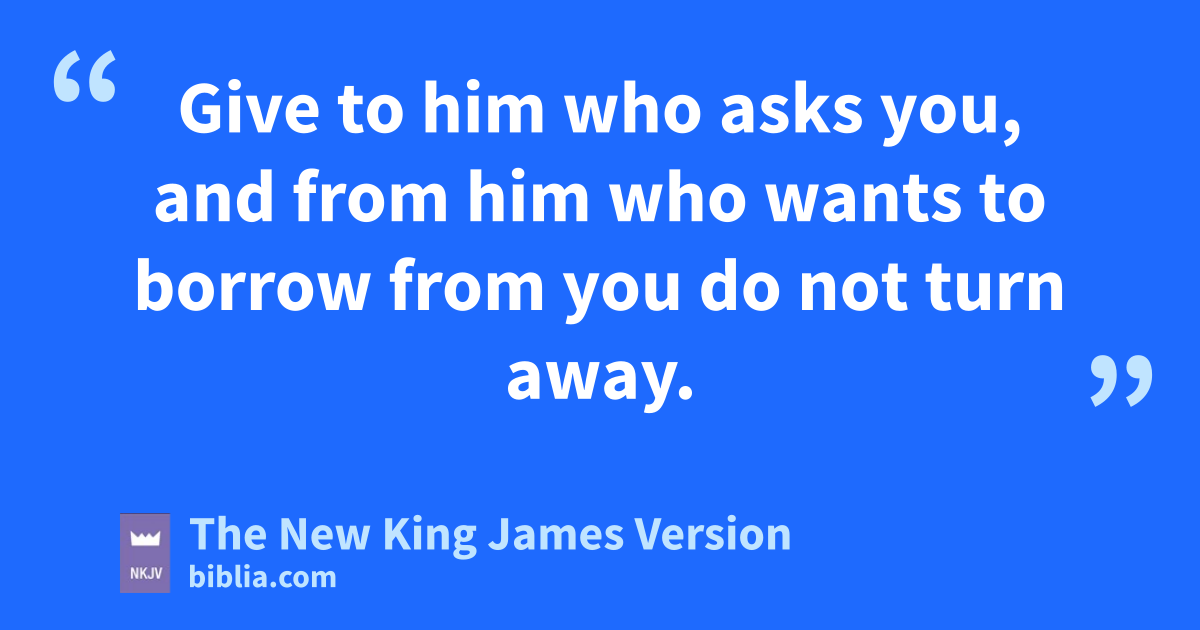 38 “You have heard that it was said, t‘An eye for an eye and a tooth for a tooth.’ 39 uBut I tell you not to resist an evil person. vBut whoever slaps you on your right cheek, turn the other to him also. 40 If anyone wants to sue you and take away your tunic, let him have your cloak also. 41 And whoever wcompels you to go one mile, go with him two. 42 Give to him who asks you, and xfrom him who wants to borrow from you do not turn away.
