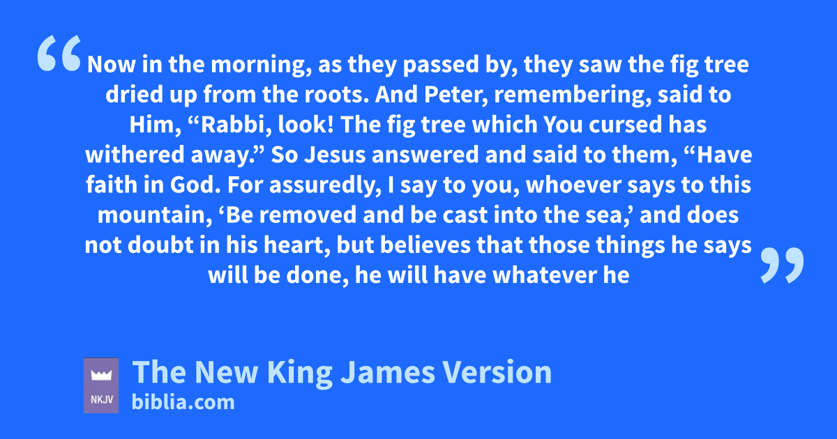 20 nNow in the morning, as they passed by, they saw the fig tree dried up from the roots. 21 And Peter, remembering, said to Him, “Rabbi, look! The fig tree which You cursed has withered away.”