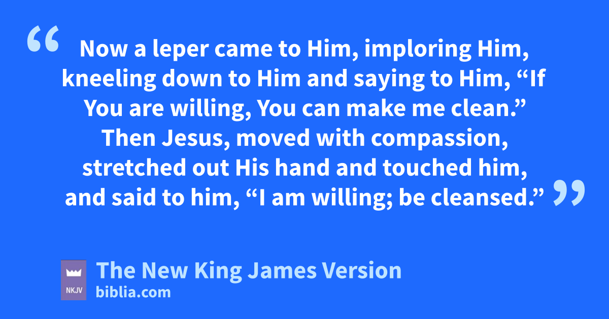 40 tNow a leper came to Him, imploring Him, kneeling down to Him and saying to Him, “If You are willing, You can make me clean.”
