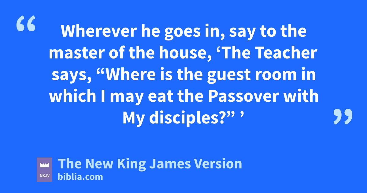 13 And He sent out two of His disciples and said to them, “Go into the city, and a man will meet you carrying a pitcher of water; follow him. 14 Wherever he goes in, say to the master of the house, ‘The Teacher says, “Where is the guest room in which I may eat the Passover with My disciples?” ’ 15 Then he will show you a large upper room, furnished and prepared; there make ready for us.”