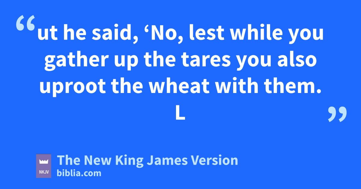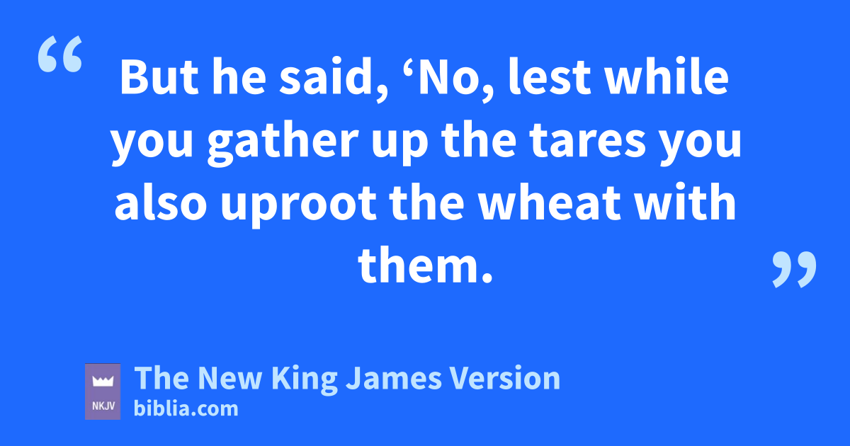 24 Another parable He put forth to them, saying: “The kingdom of heaven is like a man who sowed good seed in his field; 25 but while men slept, his enemy came and sowed tares among the wheat and went his way. 26 But when the grain had sprouted and produced a crop, then the tares also appeared. 27 So the servants of the owner came and said to him, ‘Sir, did you not sow good seed in your field? How then does it have tares?’ 28 He said to them, ‘An enemy has done this.’ The servants said to him, ‘Do you want us then to go and gather them up?’ 29 But he said, ‘No, lest while you gather up the tares you also uproot the wheat with them. 30 Let both grow together until the harvest, and at the time of harvest I will say to the reapers, “First gather together the tares and bind them in bundles to burn them, but xgather the wheat into my barn.” ’ ”