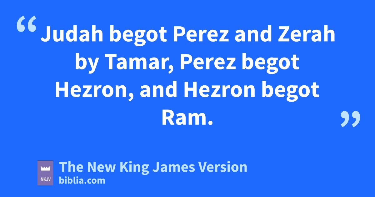 2 dAbraham begot Isaac, eIsaac begot Jacob, and Jacob begot fJudah and his brothers. 3 gJudah begot Perez and Zerah by Tamar, hPerez begot Hezron, and Hezron begot Ram. 4 Ram begot Amminadab, Amminadab begot Nahshon, and Nahshon begot Salmon. 5 Salmon begot iBoaz by Rahab, Boaz begot Obed by Ruth, Obed begot Jesse, 6 and jJesse begot David the king.
