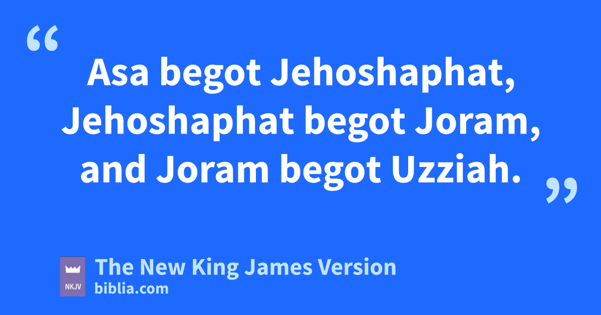 kDavid the king begot Solomon by her 2who had been the wife of Uriah. 7 lSolomon begot Rehoboam, Rehoboam begot mAbijah, and Abijah begot 3Asa. 8 Asa begot nJehoshaphat, Jehoshaphat begot Joram, and Joram begot oUzziah. 9 Uzziah begot Jotham, Jotham begot pAhaz, and Ahaz begot Hezekiah. 10 qHezekiah begot Manasseh, Manasseh begot 4Amon, and Amon begot rJosiah. 11 sJosiah begot 5Jeconiah and his brothers about the time they were tcarried away to Babylon.