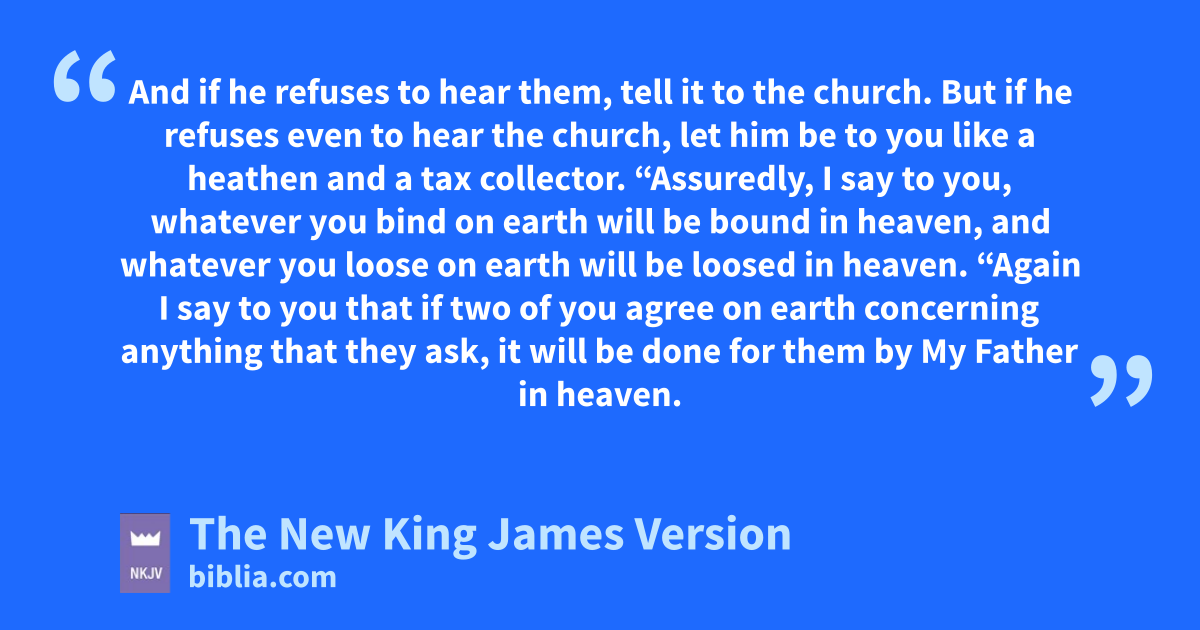 18 “Assuredly, I say to you, swhatever you bind on earth will be bound in heaven, and whatever you loose on earth will be loosed in heaven.
