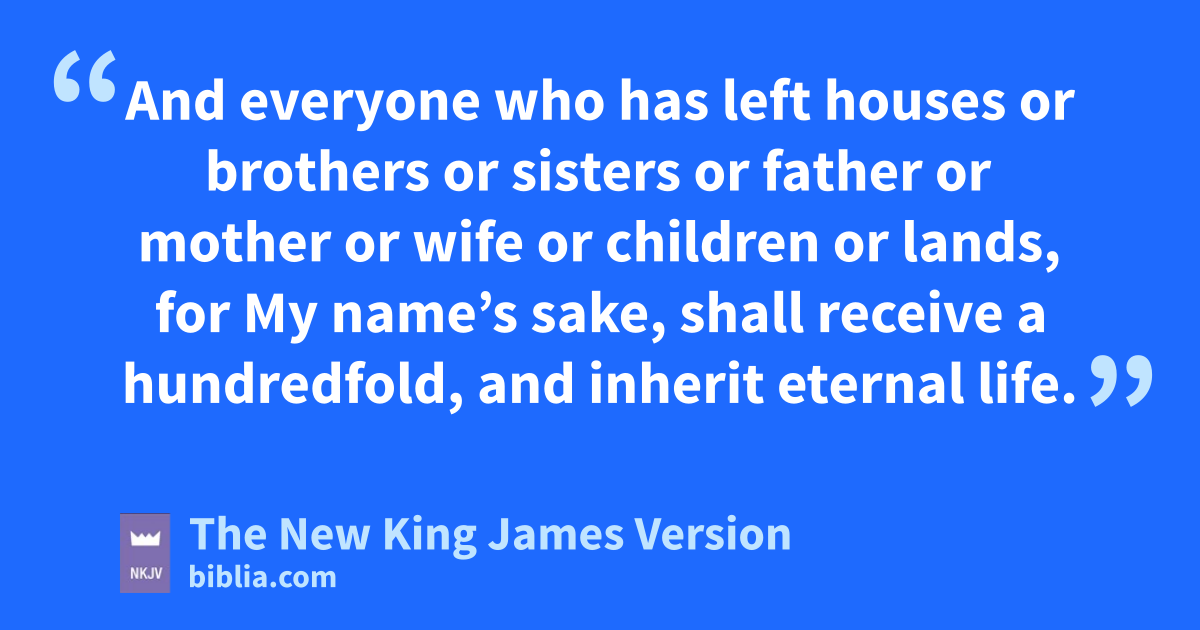 28 So Jesus said to them, “Assuredly I say to you, that in the regeneration, when the Son of Man sits on the throne of His glory, ayou who have followed Me will also sit on twelve thrones, judging the twelve tribes of Israel. 29 bAnd everyone who has left houses or brothers or sisters or father or mother 8or wife or children or 9lands, for My name’s sake, shall receive a hundredfold, and inherit eternal life. 30 cBut many who are first will be last, and the last first.