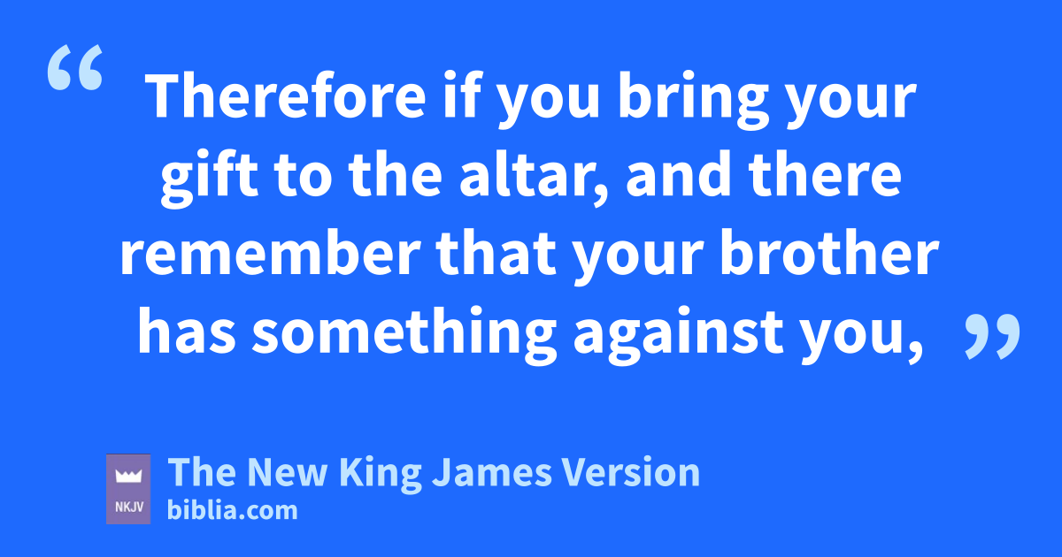 21 “You have heard that it was said to those 4of old, z‘You shall not murder, and whoever murders will be in danger of the judgment.’ 22 But I say to you that awhoever is angry with his brother 5without a cause shall be in danger of the judgment. And whoever says to his brother, b‘Raca!’ 6shall be in danger of the council. But whoever says, 7‘You fool!’ shall be in danger of 8hell fire. 23 Therefore cif you bring your gift to the altar, and there remember that your brother has something against you, 24 dleave your gift there before the altar, and go your way. First be reconciled to your brother, and then come and offer your gift. 25 eAgree with your adversary quickly, fwhile you are on the way with him, lest your adversary deliver you to the judge, the judge hand you over to the officer, and you be thrown into prison. 26 Assuredly, I say to you, you will by no means get out of there till you have paid the last penny.