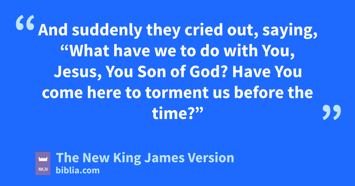28 wWhen He had come to the other side, to the country of the 3Gergesenes, there met Him two demon-possessed men, coming out of the tombs, exceedingly fierce, so that no one could pass that way. 29 And suddenly they cried out, saying, “What have we to do with You, Jesus, You Son of God? Have You come here to torment us before the time?”