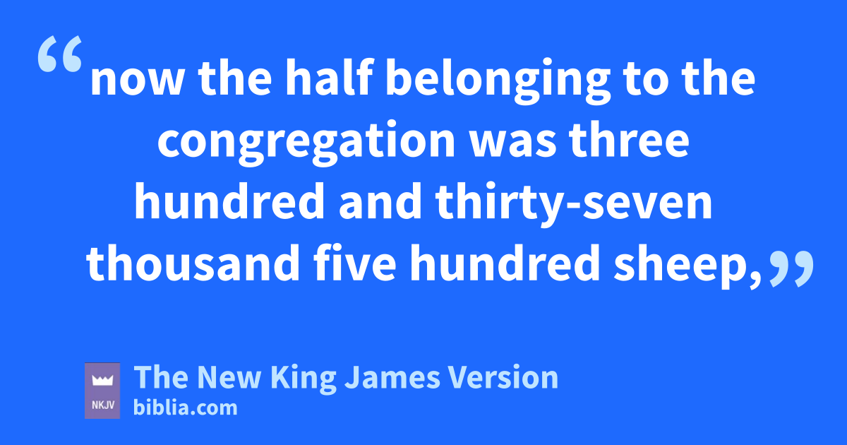 42 And from the children of Israel’s half, which Moses separated from the men who fought—43 now the half belonging to the congregation was three hundred and thirty-seven thousand five hundred sheep, 44 thirty-six thousand cattle, 45 thirty thousand five hundred donkeys, 46 and sixteen thousand persons—47 and afrom the children of Israel’s half Moses took one of every fifty, drawn from man and beast, and gave them to the Levites, who kept charge of the tabernacle of the Lord, as the Lord commanded Moses.