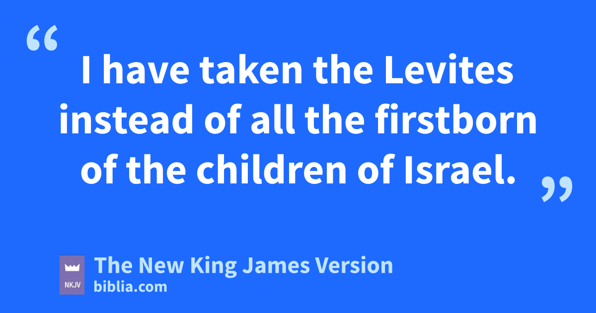 13 “And you shall stand the Levites before Aaron and his sons, and then offer them like a wave offering to the Lord. 14 Thus you shall nseparate the Levites from among the children of Israel, and the Levites shall be oMine. 15 After that the Levites shall go in to service the tabernacle of meeting. So you shall cleanse them and poffer them like a wave offering. 16 For they are qwholly given to Me from among the children of Israel; I have taken them for Myself rinstead of all who open the womb, the firstborn of all the children of Israel. 17 sFor all the firstborn among the children of Israel are Mine, both man and beast; on the day that I struck all the firstborn in the land of Egypt I 3sanctified them to Myself. 18 I have taken the Levites instead of all the firstborn of the children of Israel. 19 And tI have given the Levites as a gift to Aaron and his sons from among the children of Israel, to do the work for the children of Israel in the tabernacle of meeting, and to make atonement for the children of Israel, uthat there be no plague among the children of Israel when the children of Israel come near the sanctuary.”