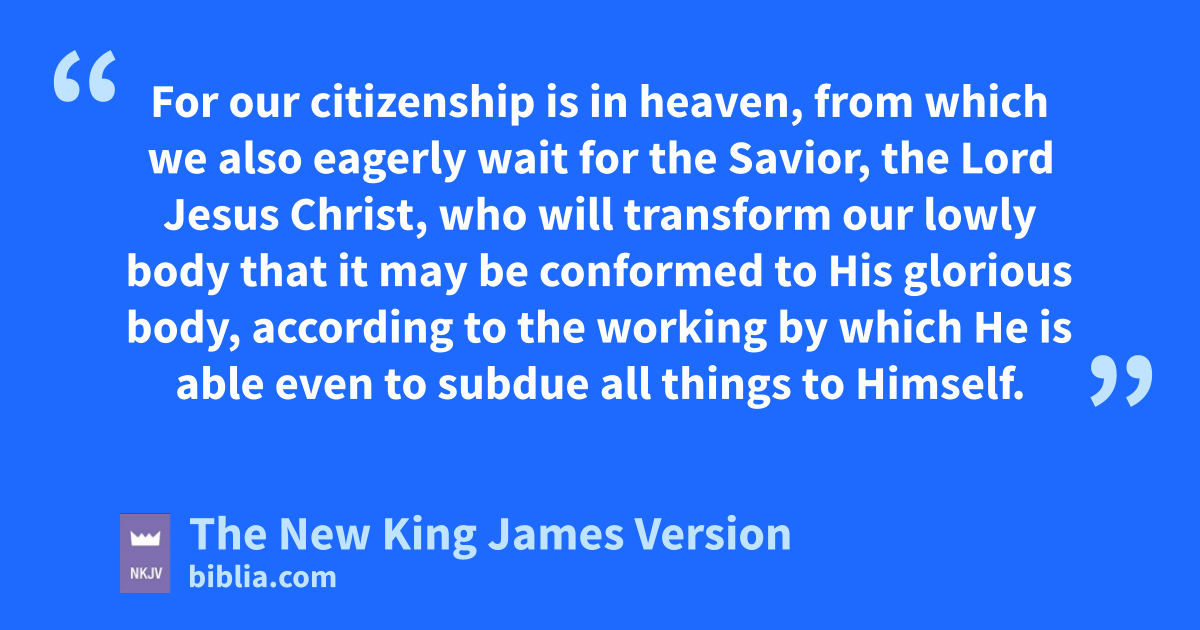 17 Brethren, ejoin in following my example, and note those who so walk, as fyou have us for a pattern. 18 For many walk, of whom I have told you often, and now tell you even weeping, that they are gthe enemies of the cross of Christ: 19 hwhose end is destruction, iwhose god is their belly, and jwhose glory is in their shame—kwho set their mind on earthly things. 20 For lour citizenship is in heaven, mfrom which we also neagerly wait for the Savior, the Lord Jesus Christ, 21 owho will transform our lowly body that it may be pconformed to His glorious body, qaccording to the working by which He is able even to rsubdue all things to Himself.