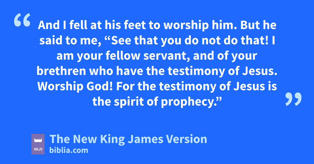 9 Then he said to me, “Write: o‘Blessed are those who are called to the marriage supper of the Lamb!’ ” And he said to me, p“These are the true sayings of God.” 10 And qI fell at his feet to worship him. But he said to me, r“See that you do not do that! I am your sfellow servant, and of your brethren twho have the testimony of Jesus. Worship God! For the utestimony of Jesus is the spirit of prophecy.”