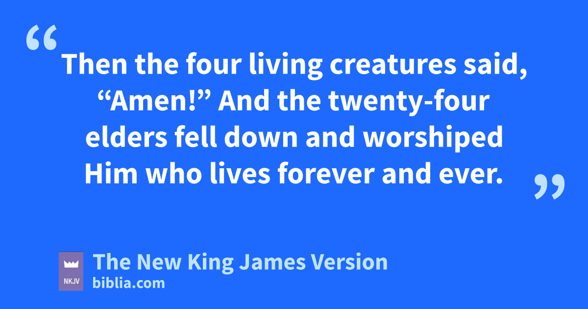 14 Then the four living creatures said, “Amen!” And the 8twenty-four elders fell down and worshiped 9Him who lives forever and ever.