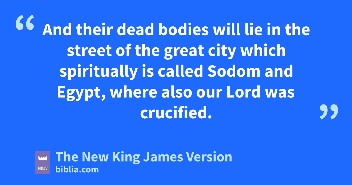 7 When they nfinish their testimony, othe beast that ascends pout of the bottomless pit qwill make war against them, overcome them, and kill them. 8 And their dead bodies will lie in the street of rthe great city which spiritually is called Sodom and Egypt, swhere also 3our Lord was crucified. 9 tThen those from the peoples, tribes, tongues, and nations 4will see their dead bodies three-and-a-half days, uand not allow their dead bodies to be put into graves. 10 vAnd those who dwell on the earth will rejoice over them, make merry, wand send gifts to one another, xbecause these two prophets tormented those who dwell on the earth.