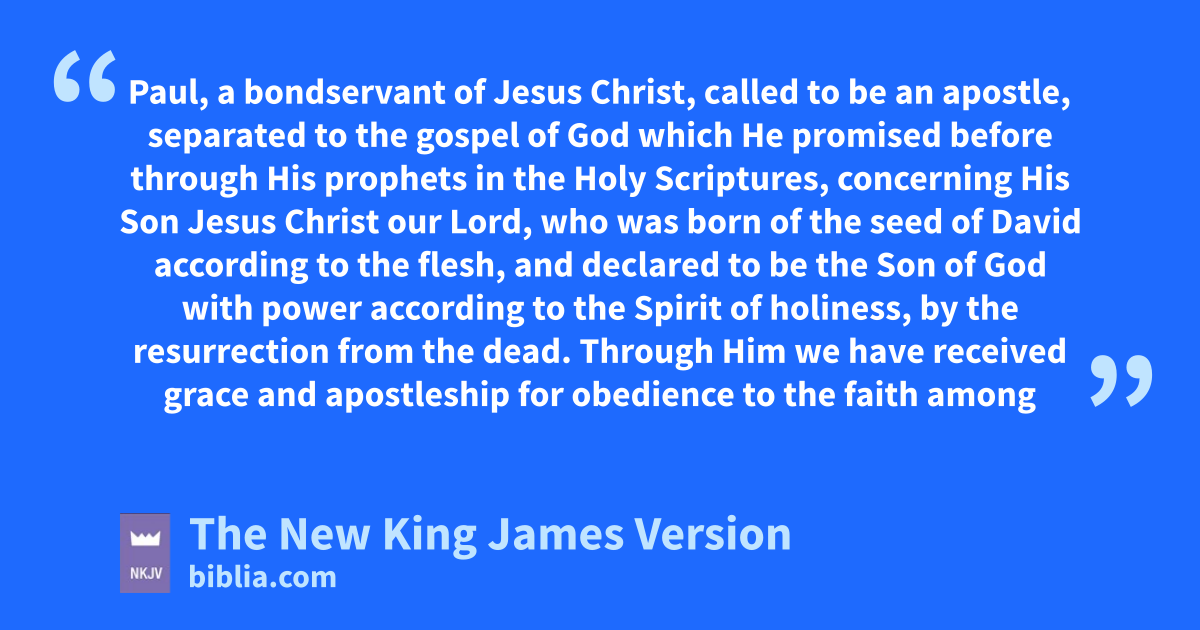 1 Paul, a bondservant of Jesus Christ, acalled to be an apostle, bseparated to the gospel of God 2 cwhich He promised before dthrough His prophets in the Holy Scriptures, 3 concerning His Son Jesus Christ our Lord, who 1was eborn of the seed of David according to the flesh, 4 and fdeclared to be the Son of God with power according gto the Spirit of holiness, by the resurrection from the dead. 5 Through Him hwe have received grace and apostleship for iobedience to the faith among all nations jfor His name, 6 among whom you also are the called of Jesus Christ;