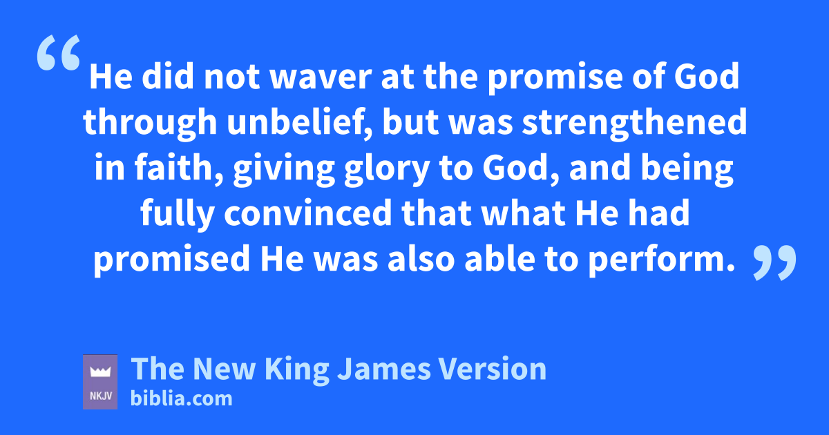 16 Therefore it is of faith that it might be paccording to grace, qso that the promise might be 4sure to all the seed, not only to those who are of the law, but also to those who are of the faith of Abraham, rwho is the father of us all 17 (as it is written, s“I have made you a father of many nations”) in the presence of Him whom he believed—God, twho gives life to the dead and calls those uthings which do not exist as though they did; 18 who, contrary to hope, in hope believed, so that he became the father of many nations, according to what was spoken, v“So shall your descendants be.” 19 And not being weak in faith, whe did not consider his own body, already dead (since he was about a hundred years old), xand the deadness of Sarah’s womb. 20 He did not waver at the promise of God through unbelief, but was strengthened in faith, giving glory to God, 21 and being fully convinced that what He had promised yHe was also able to perform. 22 And therefore z“it was accounted to him for righteousness.”