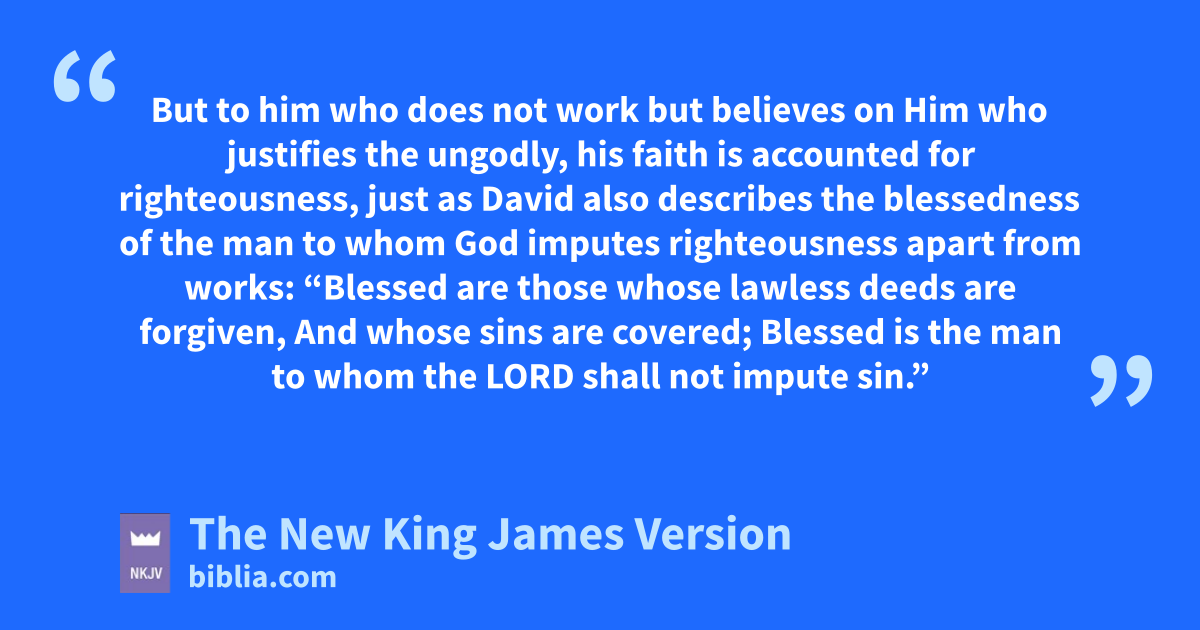 5 But to him who fdoes not work but believes on Him who justifies gthe ungodly, his faith is accounted for righteousness, 6 just as David also hdescribes the blessedness of the man to whom God imputes righteousness apart from works:
