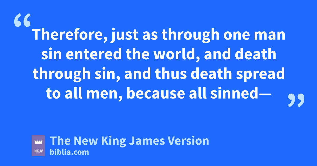 12 Therefore, just as sthrough one man sin entered the world, and tdeath through sin, and thus death spread to all men, because all sinned—13 (For until the law sin was in the world, but usin is not imputed when there is no law. 14 Nevertheless death reigned from Adam to Moses, even over those who had not sinned according to the likeness of the transgression of Adam, vwho is a type of Him who was to come. 15 But the free gift is not like the 5offense. For if by the one man’s offense many died, much more the grace of God and the gift by the grace of the one Man, Jesus Christ, abounded wto many. 16 And the gift is not like that which came through the one who sinned. For the judgment which came from one offense resulted in condemnation, but the free gift which came from many 6offenses resulted in justification. 17 For if by the one man’s 7offense death reigned through the one, much more those who receive abundance of grace and of the gift of righteousness will reign in life through the One, Jesus Christ.)