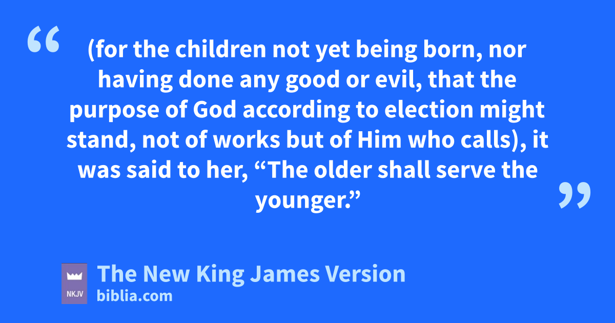 10 And not only this, but when sRebecca also had conceived by one man, even by our father Isaac 11 (for the children not yet being born, nor having done any good or evil, that the purpose of God according to election might stand, not of works but of tHim who calls), 12 it was said to her, u“The older shall serve the younger.” 13 As it is written, v“Jacob I have loved, but Esau I have hated.”