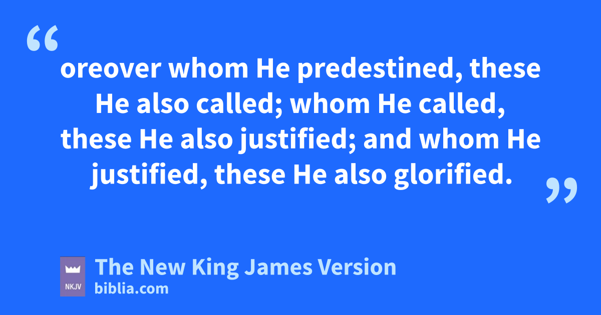 28 And we know that all things work together for good to those who love God, to those nwho are the called according to His purpose. 29 For whom oHe foreknew, pHe also predestined qto be conformed to the image of His Son, rthat He might be the firstborn among many brethren. 30 Moreover whom He predestined, these He also scalled; whom He called, these He also tjustified; and whom He justified, these He also uglorified.