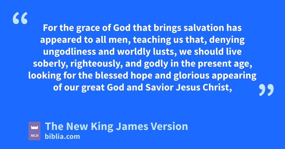 11 For gthe grace of God that brings salvation has appeared to all men, 12 teaching us that, denying ungodliness and worldly lusts, we should live soberly, righteously, and godly in the present age, 13 hlooking for the blessed ihope and glorious appearing of our great God and Savior Jesus Christ, 14 jwho gave Himself for us, that He might redeem us from every lawless deed kand purify for Himself lHis own special people, zealous for good works.