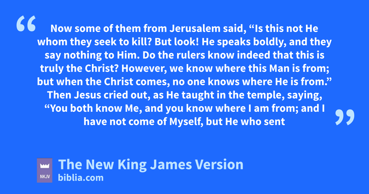 25 Now some of them from Jerusalem said, “Is this not He whom they seek to bkill? 26 But look! He speaks boldly, and they say nothing to Him. cDo the rulers know indeed that this is 4truly the Christ? 27 dHowever, we know where this Man is from; but when the Christ comes, no one knows where He is from.”