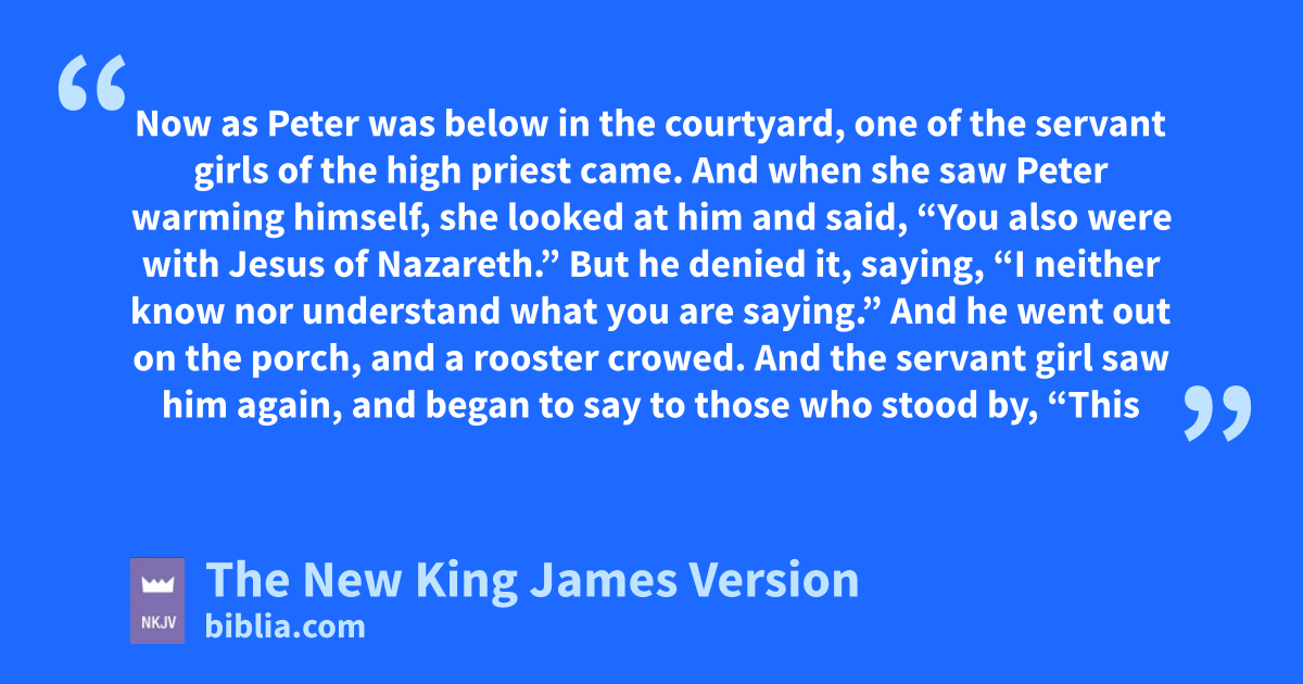 66 yNow as Peter was below in the courtyard, one of the servant girls of the high priest came. 67 And when she saw Peter warming himself, she looked at him and said, “You also were with zJesus of Nazareth.”