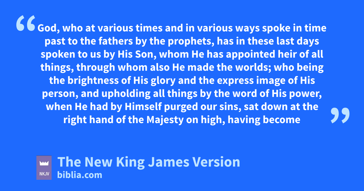 1 God, who 1at various times and ain various ways spoke in time past to the fathers by the prophets, 2 has in these last days spoken to us by His Son, whom He has appointed heir of all things, through whom also He made the 2worlds; 3 bwho being the brightness of His glory and the express cimage of His person, and dupholding all things by the word of His power, ewhen He had 3by Himself 4purged 5our sins, fsat down at the right hand of the Majesty on high, 4 having become so much better than the angels, as gHe has by inheritance obtained a more excellent name than they.