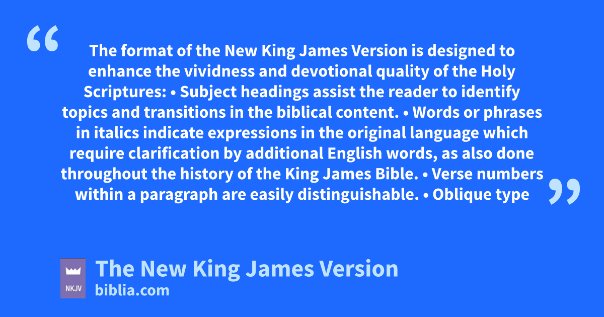 The format of the New King James Version is designed to enhance the vividness and devotional quality of the Holy Scriptures: