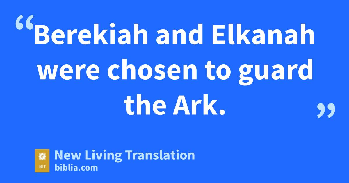 23 Berekiah and Elkanah were chosen to guard* the Ark. 24 Shebaniah, Joshaphat, Nethanel, Amasai, Zechariah, Benaiah, and Eliezer—all of whom were priests—were chosen to blow the trumpets as they marched in front of the Ark of God. Obed-edom and Jehiah were chosen to guard the Ark.