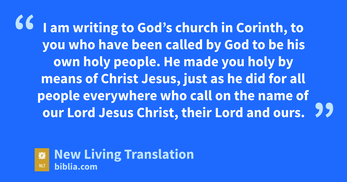 2 I am writing to God’s church in Corinth,* to you who have been called by God to be his own holy people. He made you holy by means of Christ Jesus,* just as he did for all people everywhere who call on the name of our Lord Jesus Christ, their Lord and ours.