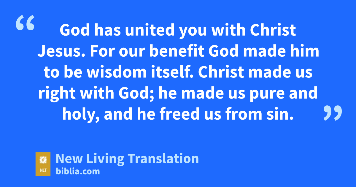 30 God has united you with Christ Jesus. For our benefit God made him to be wisdom itself. Christ made us right with God; he made us pure and holy, and he freed us from sin. 31 Therefore, as the Scriptures say, “If you want to boast, boast only about the Lord.”*
