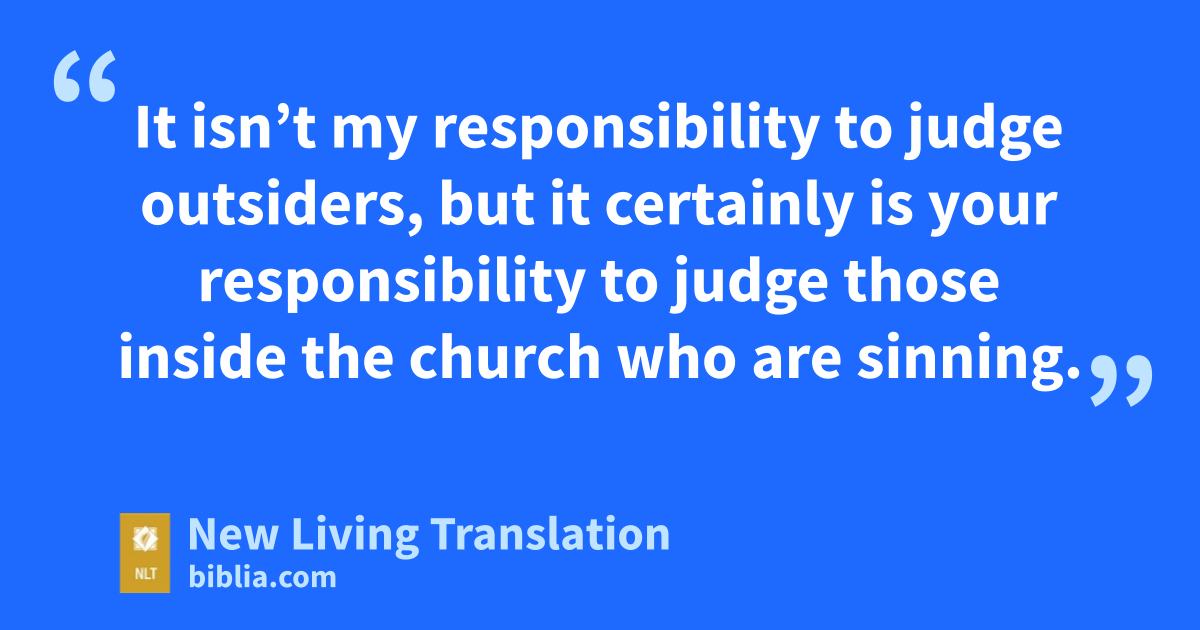 12 It isn’t my responsibility to judge outsiders, but it certainly is your responsibility to judge those inside the church who are sinning. 13 God will judge those on the outside; but as the Scriptures say, “You must remove the evil person from among you.”*