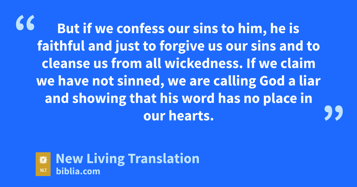 8 If we claim we have no sin, we are only fooling ourselves and not living in the truth. 9 But if we confess our sins to him, he is faithful and just to forgive us our sins and to cleanse us from all wickedness. 10 If we claim we have not sinned, we are calling God a liar and showing that his word has no place in our hearts.