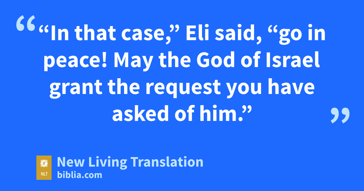 17 “In that case,” Eli said, “go in peace! May the God of Israel grant the request you have asked of him.”