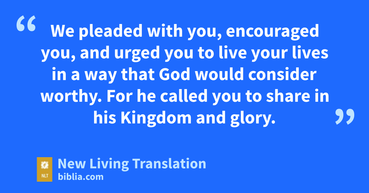 9 Don’t you remember, dear brothers and sisters, how hard we worked among you? Night and day we toiled to earn a living so that we would not be a burden to any of you as we preached God’s Good News to you. 10 You yourselves are our witnesses—and so is God—that we were devout and honest and faultless toward all of you believers. 11 And you know that we treated each of you as a father treats his own children. 12 We pleaded with you, encouraged you, and urged you to live your lives in a way that God would consider worthy. For he called you to share in his Kingdom and glory.