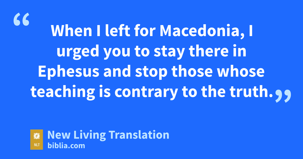3 When I left for Macedonia, I urged you to stay there in Ephesus and stop those whose teaching is contrary to the truth. 4 Don’t let them waste their time in endless discussion of myths and spiritual pedigrees. These things only lead to meaningless speculations,* which don’t help people live a life of faith in God.*