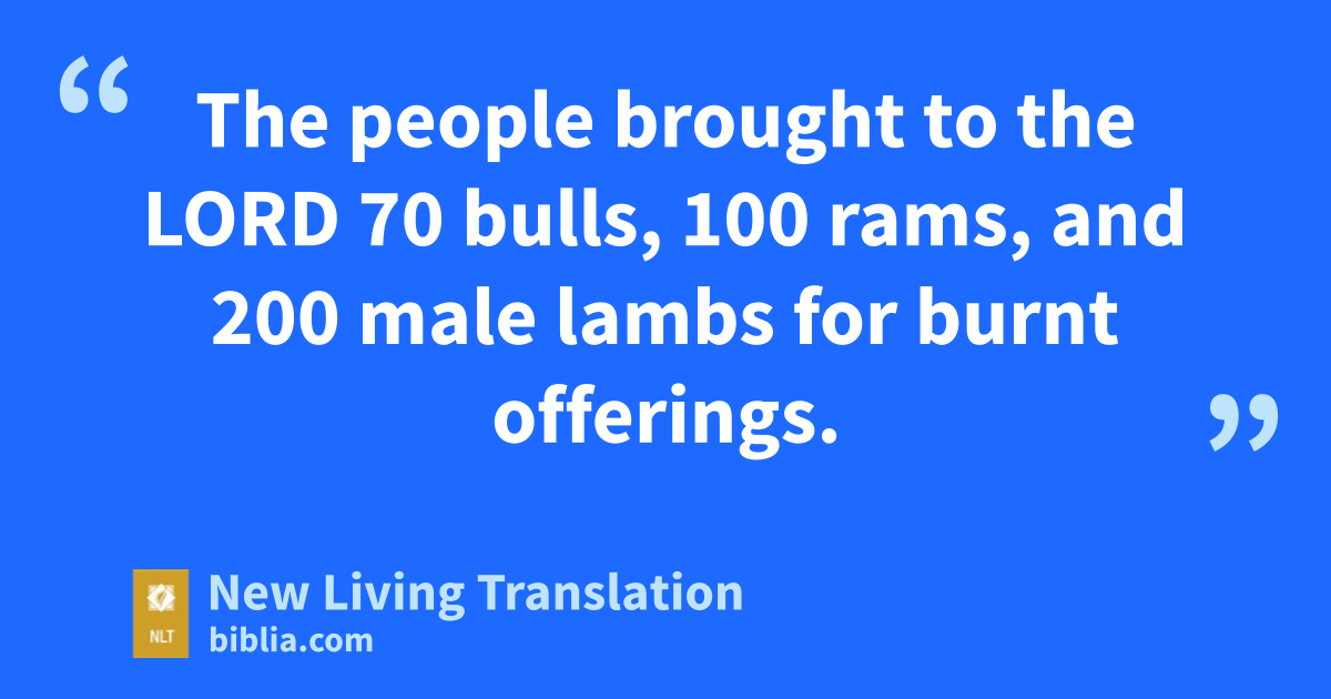 31 Then Hezekiah declared, “Now that you have consecrated yourselves to the Lord, bring your sacrifices and thanksgiving offerings to the Temple of the Lord.” So the people brought their sacrifices and thanksgiving offerings, and all whose hearts were willing brought burnt offerings, too. 32 The people brought to the Lord 70 bulls, 100 rams, and 200 male lambs for burnt offerings. 33 They also brought 600 cattle and 3,000 sheep and goats as sacred offerings.