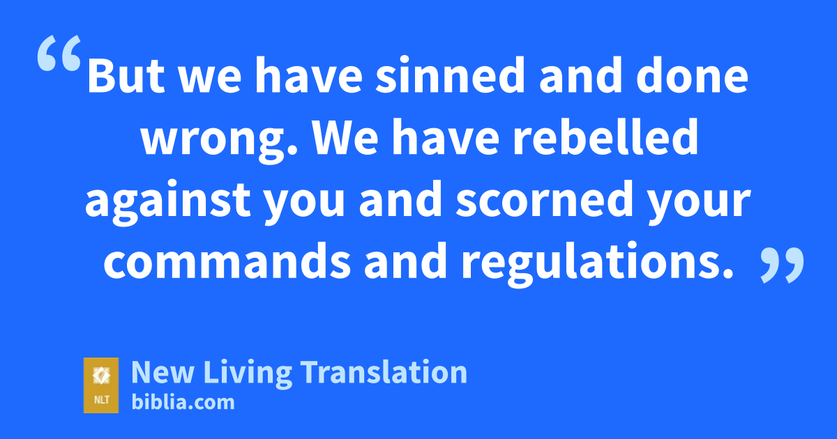 “O Lord, you are a great and awesome God! You always fulfill your covenant and keep your promises of unfailing love to those who love you and obey your commands. 5 But we have sinned and done wrong. We have rebelled against you and scorned your commands and regulations. 6 We have refused to listen to your servants the prophets, who spoke on your authority to our kings and princes and ancestors and to all the people of the land.