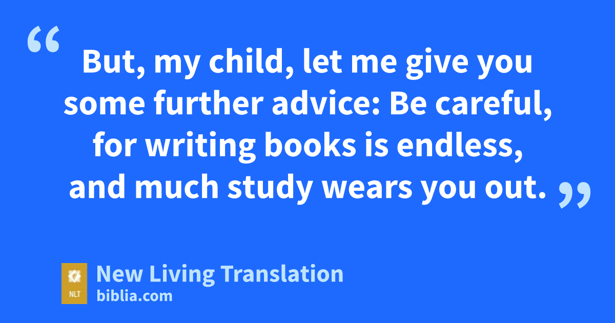 12 But, my child,* let me give you some further advice: Be careful, for writing books is endless, and much study wears you out.